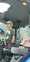 3 år: Sigmund Lid Breiland blei 3 år i jår, 19. august, og mæ kosegrisen førsvarleg festa i sikkerhetsbelte æ jubilanten klar fe ein tur i traktoren. Maskinparken utvidar seg stadigt, og ei jibusdagsfeiring syter nøkk fe at det ikkje støppar der.... Besta og Geir gratulerar deg mæ dagen din.