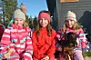 Gøy: Mari Heddejord (t.v), Hannah Sophie Hendriks Flatin og Liv Heddejord med bikkja Orry kosa seg på Raukleiv på sundag. - Det er fint og gøy, fortalte dei.