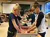 Toving: frå venstre: Sondre Kåsa og Stian Nieuwenhuize frå 4. klasse synest toving av sitjeunderlag var ein fin arbeidsoppgåve.