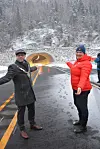 Glade: Naboordførarane Beate Marie Dahl Eide og Bengt Halvard Odden markerte at avstandane mellom Seljord og Hjartdal nå er mindre. – Endeleg, sa Odden. – Ei ny tidsrekning for Seljord, sa Eide.