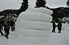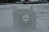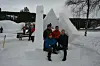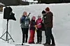 Martiens (t.v.), Amanda og David Bekker sin skulptur blei stemt fram som den beste av dei andre deltakarane. Speaker og arrangør Alexander Stettin delte ut prisen, tradisjon tru eit ishjarte fylt med myntar.Aslak Ringhus