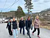 Dugnadsinnsats: Lene Hennum (f.v.) frå fylkeskommunen, Anne Margit Urbø frå 59°Nord, Birgith Reinskås Lunden prosjektleiar frå Høgde AS, Inger Synnøve Fles Lie og Ann Kristin Rinden frå 59°Nord. Bilde er tatt våren 2023 då bygginga av prøvebustaden vart lagt ut på anbod.
