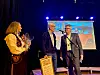 Kulturprisvinnar: Egil J. Tveit fekk kulturprisen for 2024. Her får han blomar og diplom av kultursjef Anne Margrethe Espelid (t.v.) og ordførar Ian Parry-Jones (t.h.).