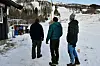 Redd Raulandsfjell: Tre av eldsjelene skodar oppover mot bakkane der dei snart håpar frikøyrarar kan få heisskyss att.