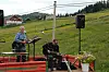 Trubaduren med gitarist: Frå scena ved bedehuset Sion tona kjende songar ut over bygda. Til venstre Elias Akselsen saman med gitaristen med artistnamnet Andersen.