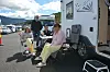 Tidleg ute: Merete «Musa» Eriksen, Odd Leif Østensen, Doffen Bergan og Eva Bergan er i perlehumør tysdag føremiddag. Dei kom til Seljord alt i går og gler seg til å sleppe inn på festivalcampen.