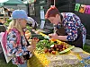 Gode råvarer: Kine Bekkengen passar på at Tiril Østvik Olsen (9) frå Karmøy får smake på frukt og grønt hos Geitmyra matkultursenter.