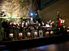 Stemningsfullt i Skorve: Det er lange tradisjonar for at Seljord Songlag syng joli inn på den unike scenen i krafthallen i Skorvekatedralen. For to år sidan var det pandemien som stakk kjeppar i hjula for gjennomføringa. I år gjer terrortrugsmålet at konserten må flyttast.