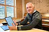 Kontor utan PC: Kontoret til Robertas er ikkje utstyrt med PC, men husar heile fire piano. Men ein iPad der ein kan blunke for å skifte noteark er eit godt hjelpemiddel, seier han.