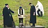 Anund Versto som prost (t.v.) og Hans Brattestaa som biskop ser storøgde på tenesteguten Dreng (Inge Nilsen) som har henta ei hovudskål til presten Zakarias Skancke (Ragnar Haugstøl) midt på natta. Bakom lurar nok ein tenestegut, Kjetil (Jon Funner), forkledd som spøkeri.