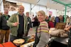 Smaksprøve: Åsne Vesaas frå Vinje delar ut smaksprøve på kjendispølsa Vesaaskurv til finansminister Trygve Slagsvold Vedum.