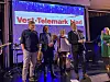 Fekk pris: Frå venstre: Aslak Ringhus, Tor Arve Vartdal, Tone Tveit og Øystein Øygarden. Til høgre: Karoline Riise Kristiansen som sat i juryen og delte ut den heiderlege omtala til VTB.