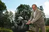 Leikande bjørnungar: Forfattaren Jon Michelet (1944–2018) var på Grimdalsstemnet i 2013 og fekk både sett og teke på skulpturane til Anne Grimdalen.