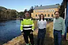 Har trua: Då VTB møtte John Oddvar Jermansen (t.v.), Kristine Lehrmann Solvang og Øyvind Ottersen ved Høgefoss kraftstasjon, hadde dei god tru på at Å Energi kjem til å bygge stort solkraftanlegg sør i Nissedal kommune.