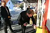 Blei imponert: Kommunal- og distriktsminister Sigbjørn Gjelsvik måtte teste den digitale løysinga, og låste seg inn i daglegvarebutikken på Hegna. – Me valte å gje nøkkelkortet til alle kundar i verda, ei løysing som nå blir bruka av 50 butikkar, fortalde dagleg leiar Hans Olav Bakås om den digitale løysinga der ein nyttar bankkort for å komme inn i butikken.