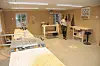 Arbeidslokale: Fjøset er bygd om til isolert arbeidslokale der det er diverse produksjonsutstyr. Det gamle fôringstrauet var umogleg å få vekk, så då blei løysinga å bygge arbeidsbenk oppå trauet.