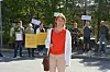 Engasjert: Irja Godal er lite imponert over det nye hytteplan-framlegget til rådmannen. Bildet er frå då raulendingar samla seg utanfor kommunehuset i Åmot i samband med politisk behandling av saka.