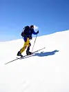Skigåar på telemarksski med feller på veg opp mot Gaustatoppen. Turen opp på feller tek omtrent to timar, medan turen ned tar alt frå 5 minutt til ein time. Foto: Gunnar Lier / NTB scanpix / NPK