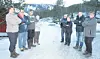 Tone Norheim Klausen (t.v.), Øivind Klausen, Inge Homme, Marit Rydland, Gjermund og Henni Kile, Tarjei Lauvdal og Anne Nygård synest det er provoserande at kommunen ikkje vil hugse førre gongen bebuarane protesterte mot vegløysinga til Kynjushamaren (i bakgrunnen).