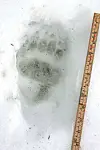 Sandvik fekk foreviga bjørnespora med fotoapparat, og ved å leggje ein tommestokk ved sida kom storleiken på avtrykka enda klarare fram. Eit svært tydeleg avtrykk av labben med klørne godt ute.