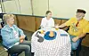 Dei to ferjekafégjestene byrjar å gapskratte når Åshild Sollid