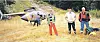 Midt på 1990-talet sytte dåverande disponent i Vest-Telemark Bilruter L/L Kjell Gunnar Heggenes (t.v.) og noverande disponent Svein Olav Straand (t.h.) i det som i dag heiter Telemark Bilruter å leige helikopter for å flyge inn tidlegare disponent Olav Hovelsrud (i midten) til hytta hans ved Langesæ i Vinje kommune.