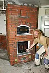 – Me må teste masseomnen, fordi det er arbeidd med mange detaljar inni han, seier Sten Sjøstrand. Og alt fungerte som det skal i det energieffektive fyringsmøbelet på Mo prestegard.