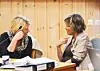 t.v.) og rådmann Brit Houge i diskusjonar på januarmøtet der retningslinene blei delte ut. (Foto: Randi Berdal Hagen