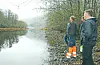 Flatsjå-osen er tilgrodd på sidene, og masse har lagt seg opp i botnen så vatnet har trongare utløp enn det burde ha, meiner jordbrukarane i Flatdal. F.v. Asbjørn Lognvik, Torgeir Lognvik, Odd Arne Byberg og Tore Mæland