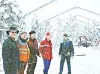 Langrennskomiteen under open himmel i det som blir smøretelt på stadion. F.v. leiar Olav Godtland, nestleiar Geir Brubakken, arenasjef Gunvald Nygård, Oddvar Bygland og Åsmund Nordstoga. I tillegg er Tor Arne Heggtveit (rennsekretær) og Oddleiv Holøkken (start og tidtaking) med i komiteen.