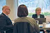 Konstituert rådmann i Seljord, Kari Gro Espeland, kom med framlegg om å trekkje sak om sal av det gamle skulebygget i Dyrlandsdalen. Til venstre, ordførar Halfdan Haugan (Ap).
