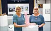 Bjørg Krossbakken (t.v.) og Sissel Granum er saman med Kari Rustberggard ansvarlege for Vinjeutstillinga. Arbeidet med neste års utstilling startar tidleg på hausten. Her står Krossbakken og Granum saman med den rosa betongkatten PiaRosa, som ynskjer velkomen til Vinjeutstillinga.