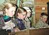 Mellomtrinnet synte skodespel om ein skuledag i gamal tid. Frå venstre Marit Nordgarden, Malene Hermansen, Åse Kristin D. Svalastog og David Pedersen, alle frå 5. klasse.
