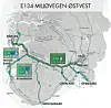 E 134 vil binde saman dei to mest folkerike områda i landet på ein effektiv og lønsam måte, understrekar Vegforum Øst–Vest. (Illustrasjon frå Vegforum Øst–Vest sin brosjyren «Hvorfor E 134 Miljøvegen som hovedvei mellom Øst og Vest?»)