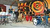 Kjetil Flatland (nummer tre frå venstre) hadde samla musikk-kameratar til ein fantastisk jazz-kveld på kunstlåven i Seljord. Frå venstre Euolf Dahle, Lars Egil Hammersbøen, Kjetil Flatland, Frode Flatland og Gard Nilsen.