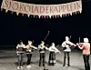 Elias Norgaard, Olav Brennemo Eriksen, Elias Norgaard Johansen, Abdi Vartdal og Eiril Lauklid (tilfeldig rekkefylgje) i Seljord juniorspelemannslag saman med lærar Ragnhild Knudsen.
