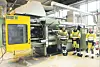 Norsk Saneringsservice ved reparatør Kristian Skinnarland (t.v.), anleggsleiar Tor Olav Rykkelid og maskinførar Halvor Teigland har fått i oppdrag å fjerne mange av dei tunge maskinane som i si tid produserte delar i epoxy i lokalet som har husa ABB og Bergen Plastics Composite på Dalen.