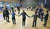 Dansekurset på Rauland blei avslutta med at alle som hadde vore på kurs, anten det var fele, kveding, munnharpe eller dans fekk prøve seg på golvet. Instruktør var Even Westeng (i midten).