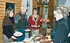Inger-Marie Bakås på Skreppa i Morgedal (t.h.) baud på tradisjonskost då f.v. Ellen Dagsrud frå Fylkesmannen, Halvor Sem frå Skogselskapet og prosjektleiar Solveig Hellevig la fram programmet for feiringa av unionsoppløysinga.