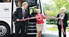 Fylkesordførar Terje Riis-Johansen, Sigrid Brattabø Handagard frå Samferdselsdepartementet og Tokkeordførar Hilde Alice Vågslid opna ekspressruta over Suleskar i fjor sommar. (Arkiv