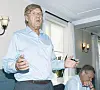 NHO-toppsjef Finn Bergesen jr. talte til næringslivsrepresentantar og politikarar i Seljord på torsdag. Sittande NHO-leiar i Telemark, hotelleigar Johan Straand i Vrådal.