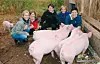 Mari Baksaas (t.v.), Mette S. Haugsjå, Anne Karin Grimstveit, Elin Fjalestad og Tove Homme blei matmødrer i turnusordning for grisane like ved eit byggjefelt i Treungen.