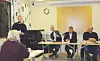 Tore Åsland (Ap) (t.v) er uroa for krevjande økonomi for kommunen i tida framover. Han ville privatisere nokre kommunale vegar, og meinte ein kunne spare om lag 250 000 kroner per år på tiltaket. Tore Åsland (f.v.), rådmann Øystein Tveit, Tarjei Gjelstad (Ap) og Tarjei Draugedal (Krf).