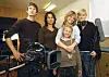Filmproduksjonen er godt i gang. Her er studentane Raymond Aasen, Wilmine Vaagen, Linn Jeanethe Kyed og Henriette Carlsen saman med Marit Vadder (9) frå Byrte som spelar hovudrolla i kortfilmen.