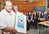 Demensprisen, eit trykk laga av Inger Dale Flatebø, kom svært overraskande på leiar Frank E. Lien i Nissedal historielag. Sittande framme er Tone Narvesen i Nissedal helselag, utdelar Alfhild Tørnes og Astrid Eidem Nordal, demenskontakt i fylkeslaget Nasjonalforeininga har i Telemark.