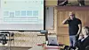 Rådmann i Vinje, Jan Myrekrok, viste korleis Sarpsborg kommune si heimeside ser ut. – Dette er eit døme på korleis ein brukar kunstig intelligens – spørjerobot på ei nettside, sa han. Regionrådleiar Anne Aasmundtveit fylgjer med.