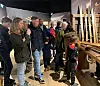 Skihistorie: Her er gjengen i Norsk Skieventyr og får fortalt korleis ein laga treski. Frå venstre ser me mellom andre Remi Kleiv Hugen frå Kviteseid, Tristan Hafredal-Melby frå Porsgrunn og Henrik Valseth Holmegård frå Fyresdal.