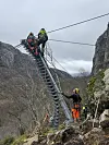 Men før ein kan støype må sekkar med gysemasse opp fjellsida. Anna fortel at ho festa to sekkar på 25 kilo kvar mellom beina i klatreselen og bruka taugmopeden for å kome seg opp, før turen gjekk ned att før ny frakt.