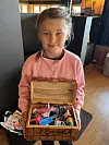 Begge barna har fått oppgåver på turisthytta. Viktor sin jobb er å ordne puter i stolane ute, og ynske velkommen til gjestene. Elvira har ei skattekiste med leiker, som barn som besøker hytta, kan velje seg to ting frå. Dei er også med å steike vaflar og hjelper til når det trengst.