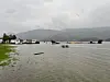 Høg vasstand i Seljordsvatnet skapte også problem på Telnessanden camping.